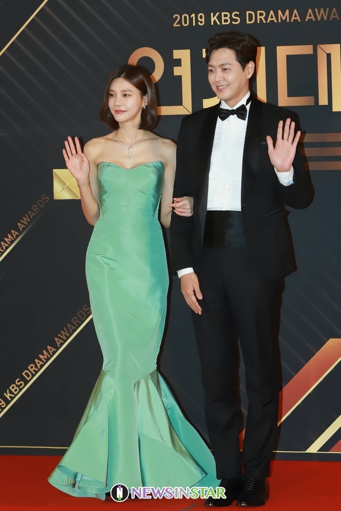 12월 31일 오후 서울시 영등포구 여의도 KBS 신관 웨딩홀에서 '2019 KBS 연기대상' 레드카펫 행사가 열려 '우아한 모녀' 배우 차예련, 김흥수가 참석해 포토타임을 갖고 있다.
