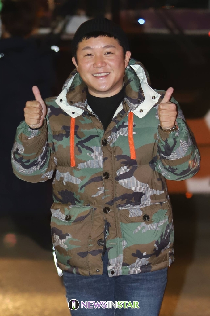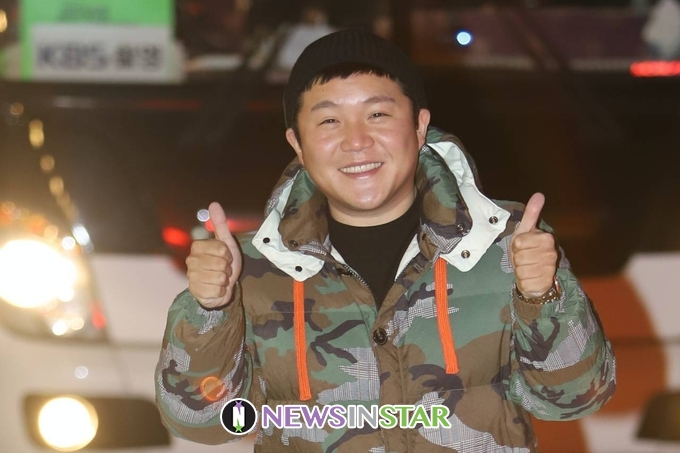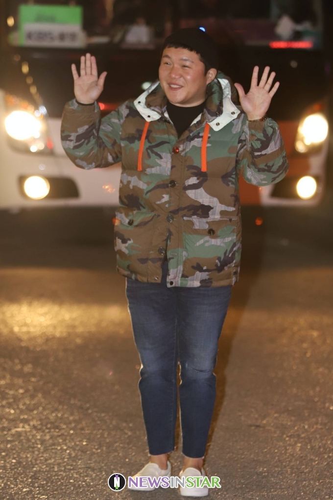 이날 조세호가 출근길에 포즈를 취하고 있다.