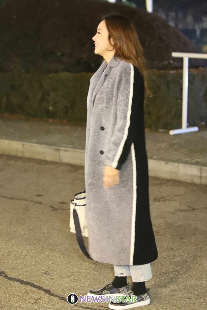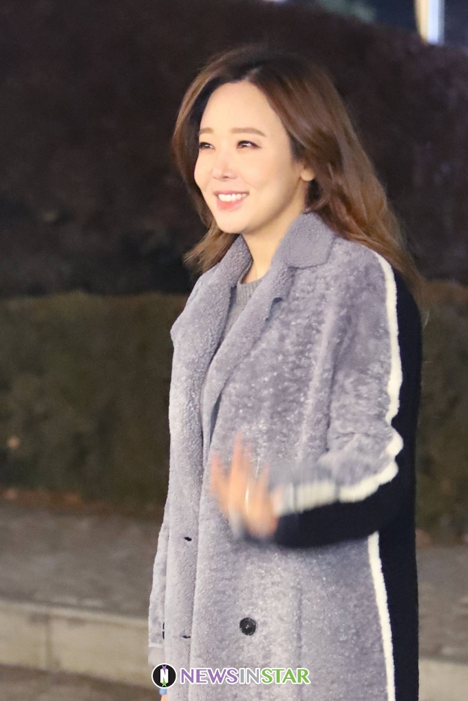 이날 소유진이 출근길에 포즈를 취하고 있다.