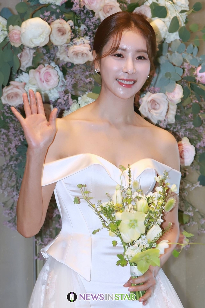 [포토인스타] 한다감, 해피 바이러스 전파하는 손인사 (결혼식 기자회견)