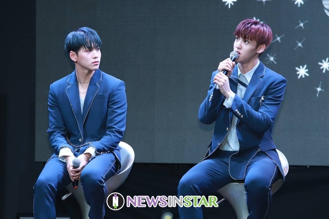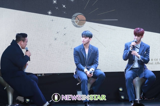1월 6일 오후 서울시 마포구 서교동 홍대 무브홀에서 듀오 비오브유(B.O.Y)의 첫 미니 앨범 'Phase One : YOU' 발매 기념 쇼케이스가 열려 김국헌과 송유빈이 기자와의 질의 응답 시간을 갖고 있다.