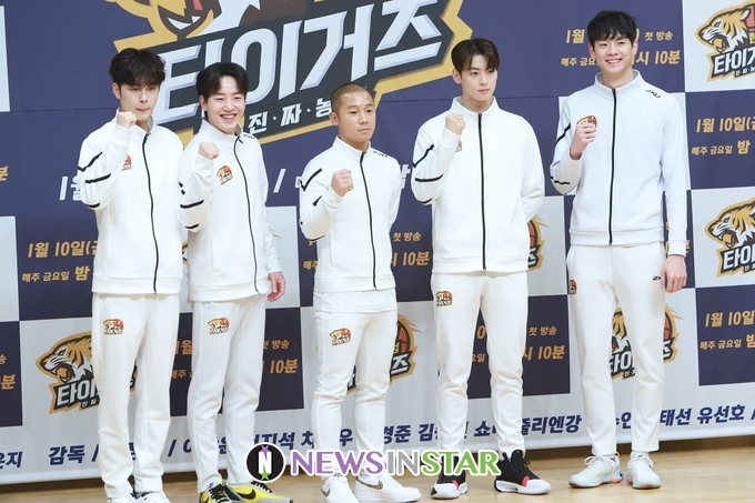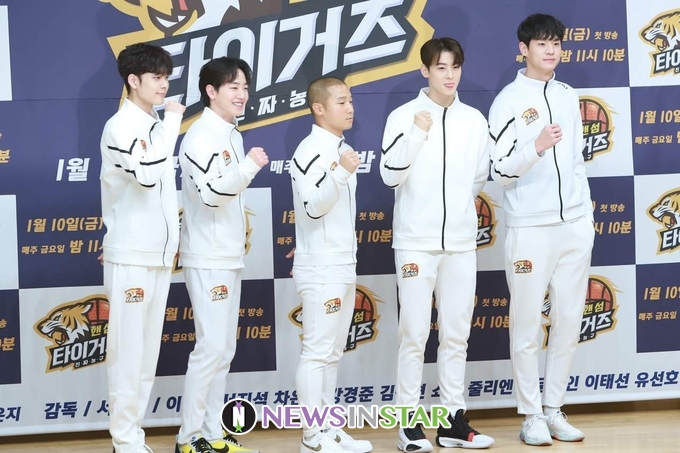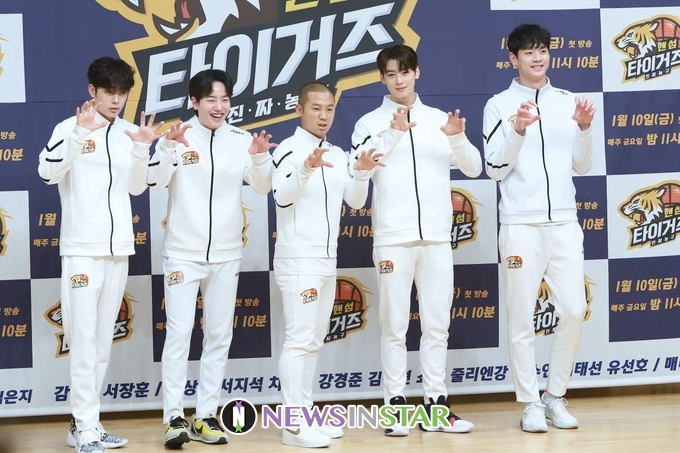 9일 오후 서울시 양천구 목동 SBS에서 2020 SBS 새 예능 ‘진짜 농구, 핸섬타이거즈’ 제작발표회가 열려 유선호, 이태선, 쇼리, 차은우, 문수인이 참석해 포토타임을 갖고 있다.
