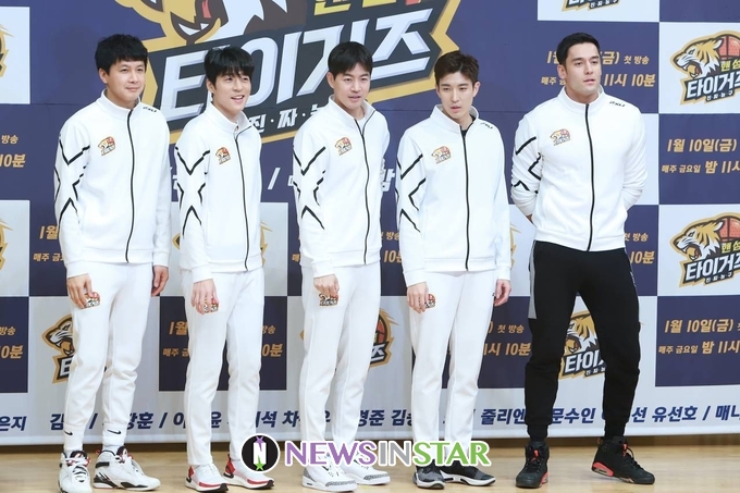 9일 오후 서울시 양천구 목동 SBS에서 2020 SBS 새 예능 ‘진짜 농구, 핸섬타이거즈’ 제작발표회가 열려 김승현, 서지석, 이상윤, 강경준, 줄리엔 강이 참석해 포토타임을 갖고 있다.