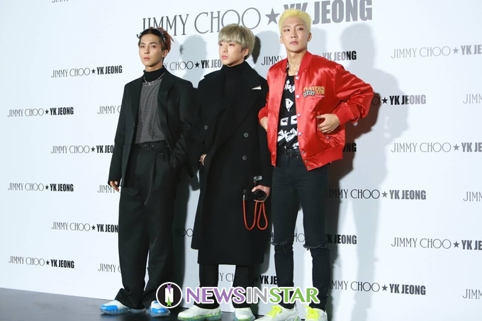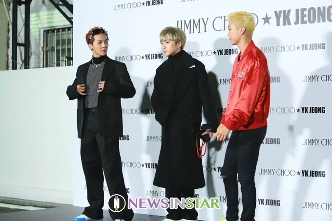 9일 오후 서울시 강남구 청담동 드레스가든에서 영국 럭셔리 액세서리 브랜드 지미추(JIMMY CHOO)가 정윤기와 콜라보레이션 한 ‘더 하이라이티드’ 캡슐 컬렉션 론칭 기념 이벤트가 열려 위너 송민호, 강승윤, 이승훈이 참석해 포토타임을 갖고 있다.