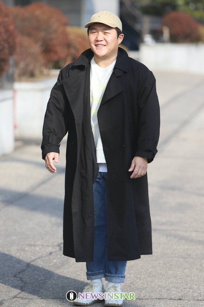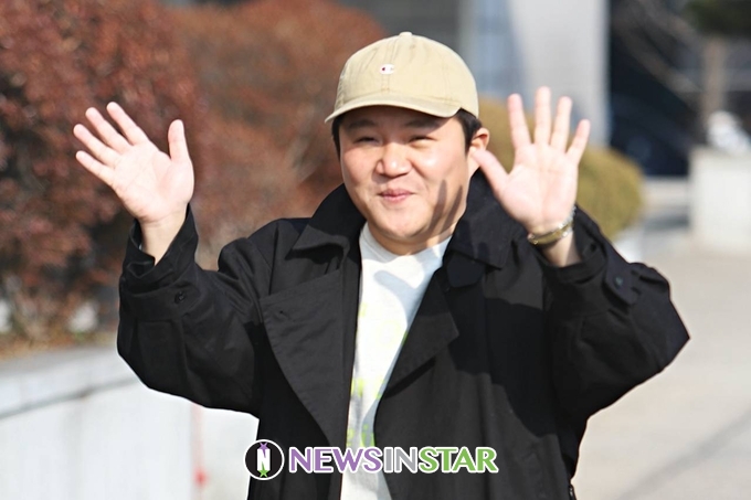 이날 조세호가 출근길에 포즈를 취하고 있다.