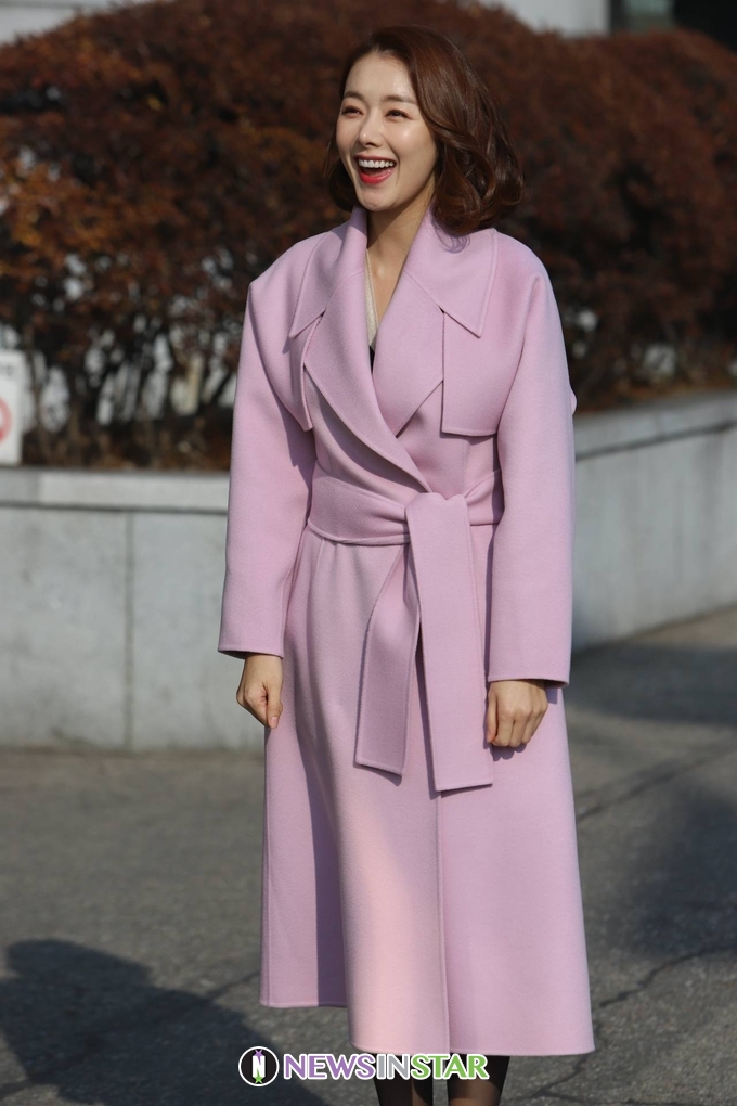 이날 소이현이 출근길에 포즈를 취하고 있다.