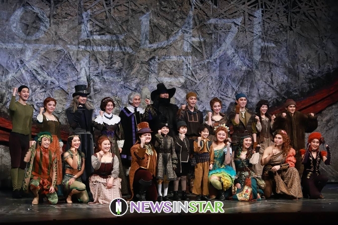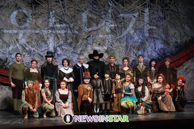 1월 14일 서울시 서초구 예술의 전당 오페라극장에서 뮤지컬 '웃는 남자' 프레스콜 행사가 열려 어린 그윈플렌역과 앙상블이 포토타임을 갖고 있다.