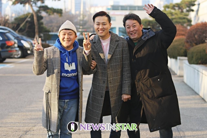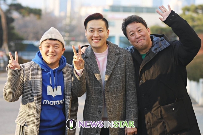 이날 조세호, 문천식, 정준하가 출근길에 포즈를 취하고 있다.