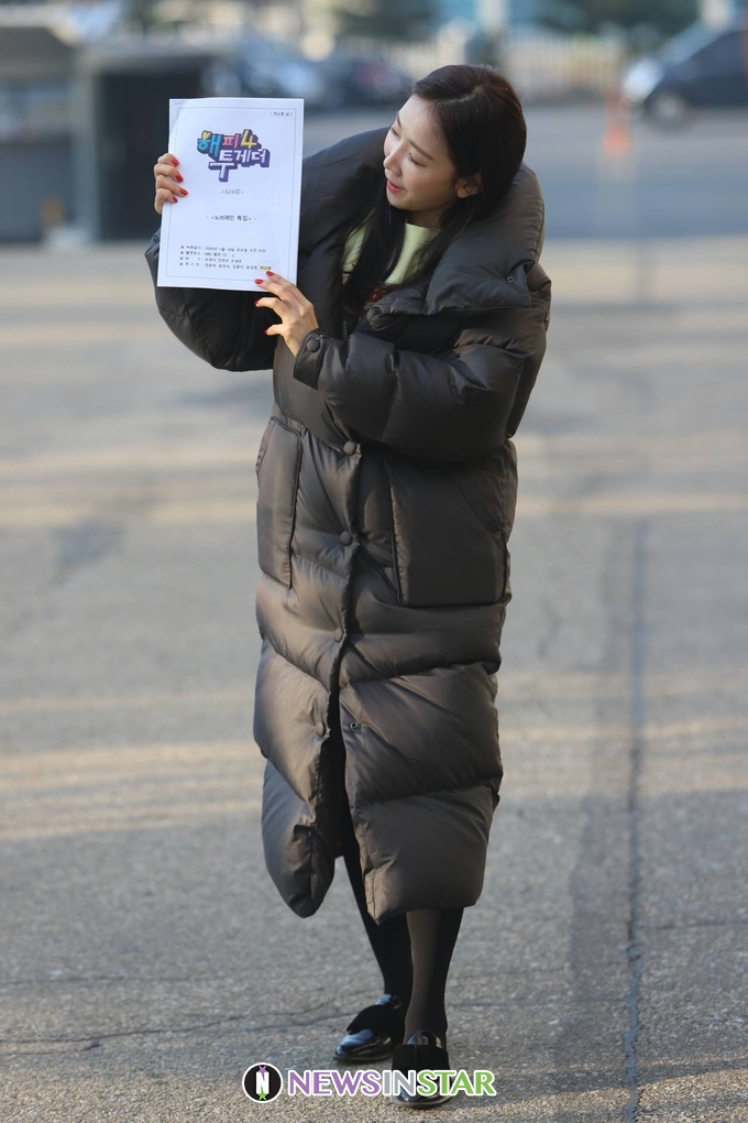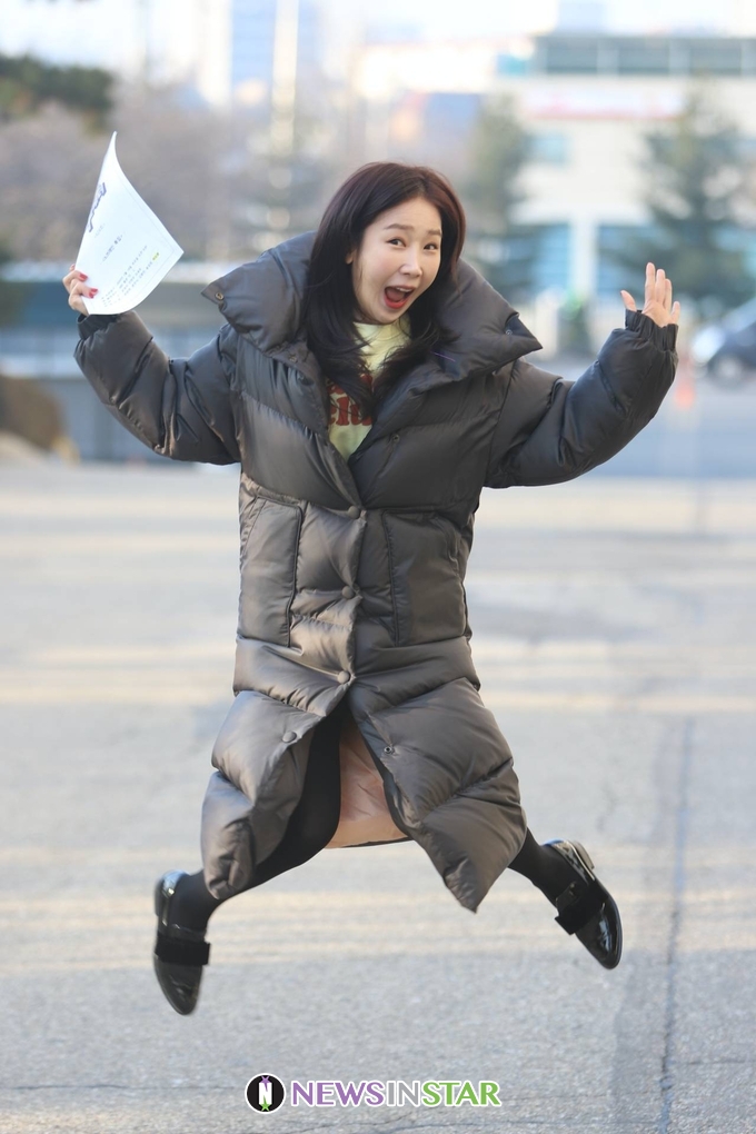 이날 박소영이 출근길에 포즈를 취하고 있다.