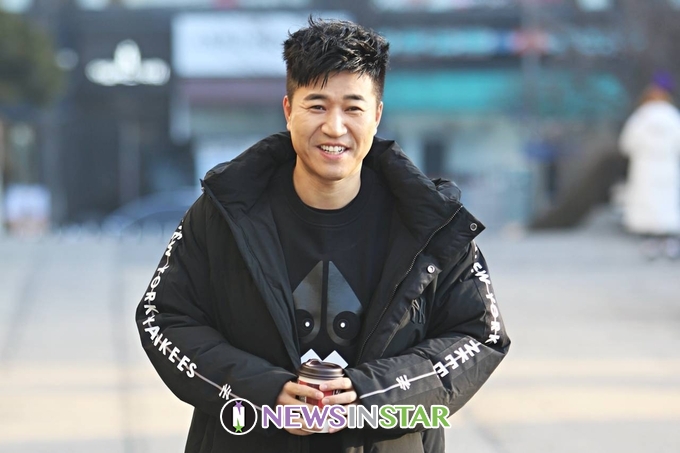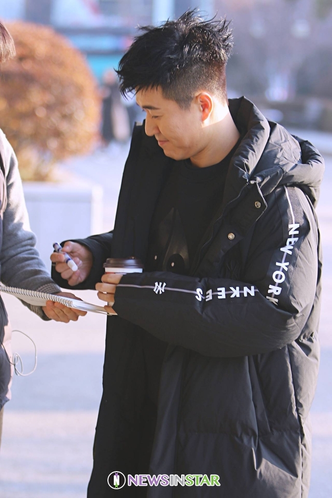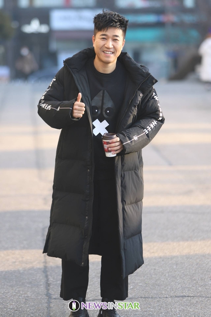 이날 김종민이 출근길에 포즈를 취하고 있다.