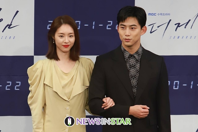 1월 22일 오후 서울시 마포구 상암동 MBC 에서 새 수목드라마 '더 게임: 0시를 향하여' 제작발표회가 열려 배우 옥택연, 이연희가 참석해 포토타임을갖고 있다.