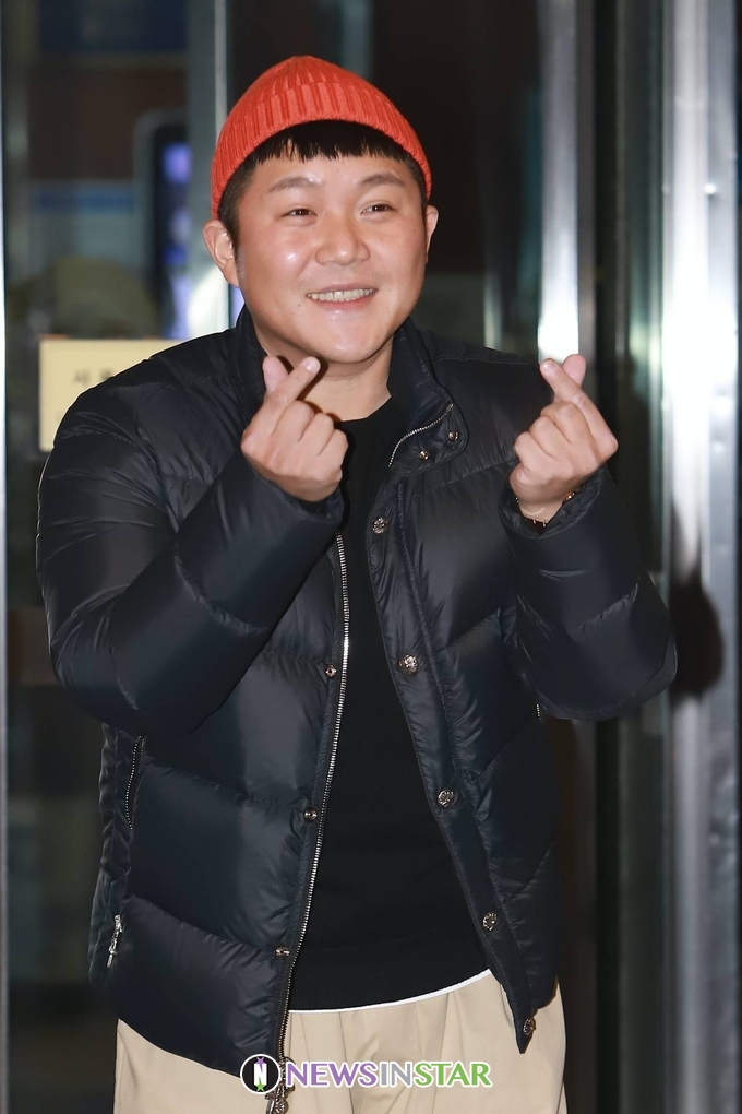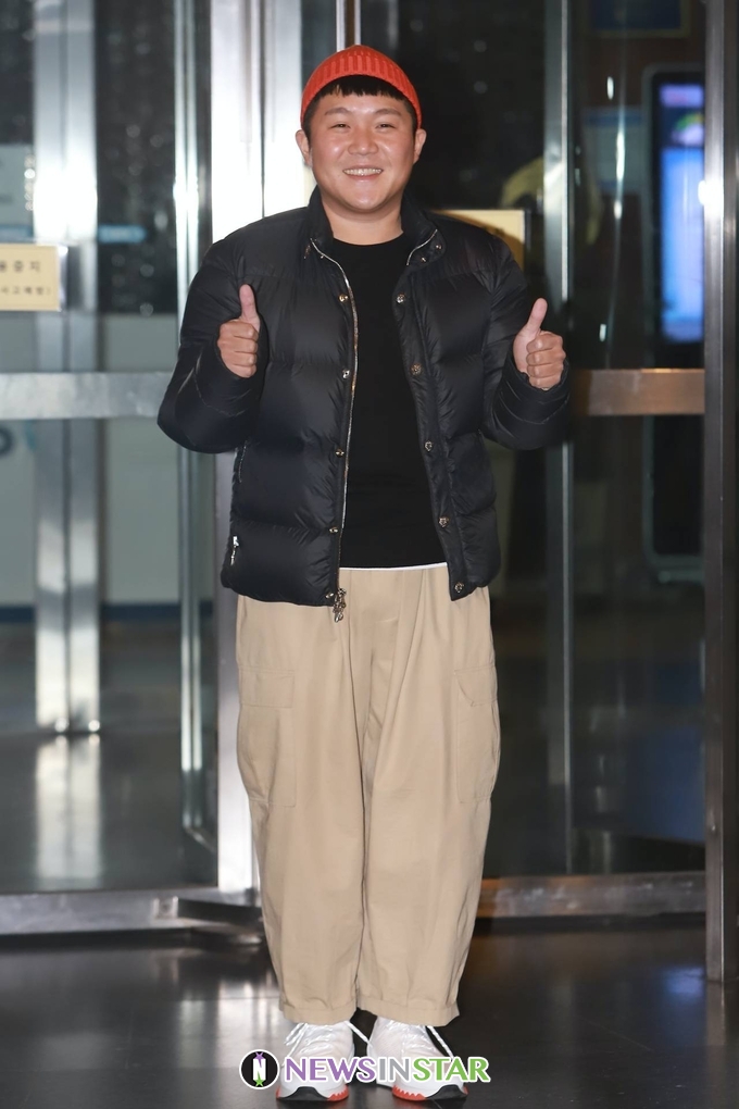 이날 조세호가 출근길에 포즈를 취하고 있다.