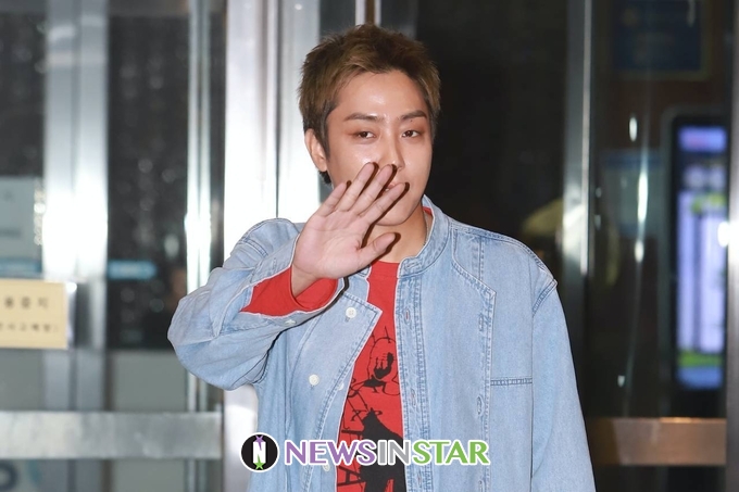 이날 은지원 이 출근길에 포즈를 취하고 있다.