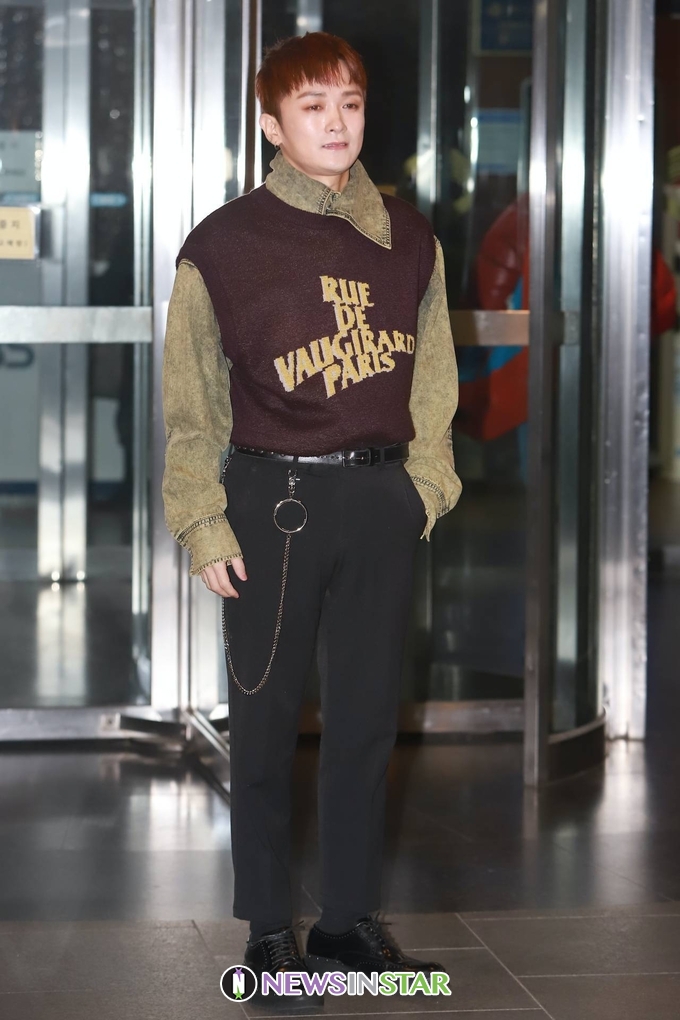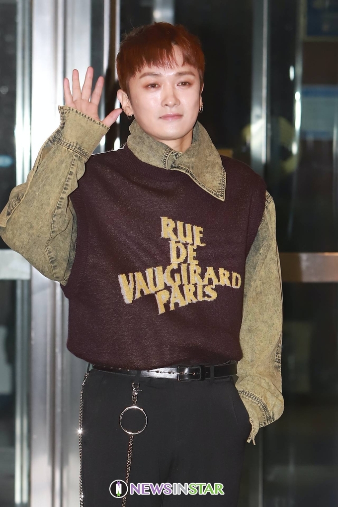 이날 김재덕이 출근길에 포즈를 취하고 있다.