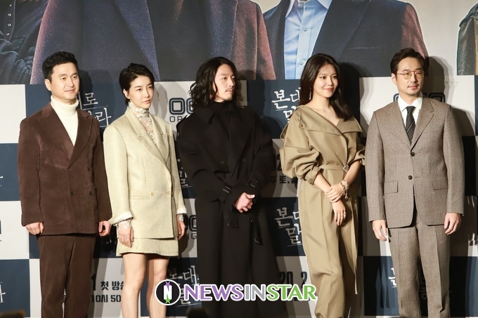 29일 오후 서울시 영등포구 여의도동 콘래드 서울 호텔에서 OCN 새 토일 오리지널 ‘본 대로 말하라’의 제작발표회가 열려 배우 장혁 최수영 진서연, 장현성, 류승수가 참석해 포토타임을 갖고 있다.