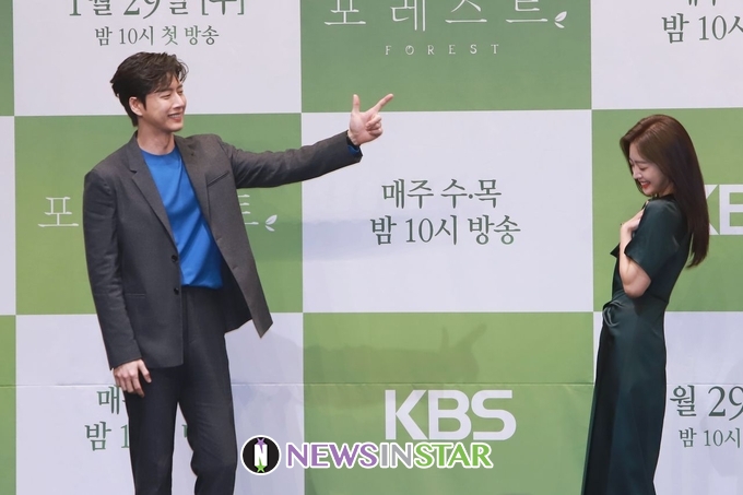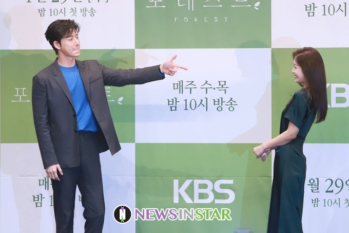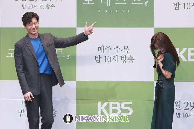 29일 오후 서울시 구로구 신도림동 라마다 서울 신도림에서 KBS 새 수목드라마 ‘포레스트’의 제작발표회가 열려 배우 박해진, 조보아가 참석해 포토타임을 갖고 있다.