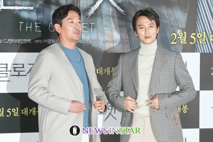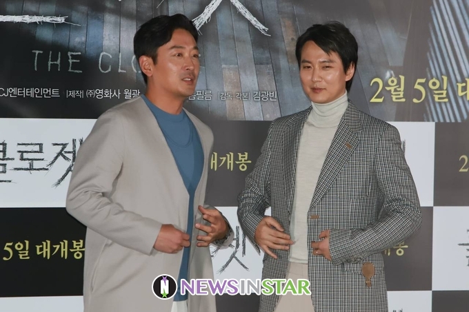 29일 오후 서울시 용산구 CGV 용산아이파크몰에서 영화 '클로젯' 언론시사회가 열려 배우 하정우와 김남길이 참석해 포토타임을 갖고 있다.