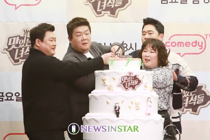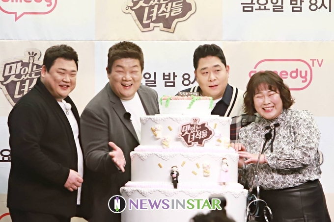 먹어 본 사람들만이 모여 제대로 된 맛을 소개하는 고급 먹방 예능 코미디 TV '맛있는 녀석들'이 첫 방송 5주년을 맞아 기념 케이크 컷팅과 기자 간담회 그리고 디지털콘텐츠 '오늘부터 운동 뚱' 론칭 행사를 가졌다.