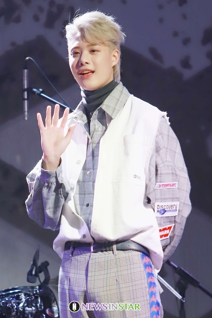 31일 오후 서울시 용산구 한남동 현대카드 언더스테이지에서 그룹 아이즈(IZ)의 세 번째 싱글앨범 'THE : IZ' 발매기념 쇼케이스가 열려 현준이 포토타임에서 포즈를 취하고 있다.