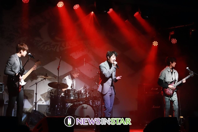 31일 오후 서울시 용산구 한남동 현대카드 언더스테이지에서 그룹 아이즈(IZ)의 세 번째 싱글앨범 'THE : IZ' 발매기념 쇼케이스가 열려 지후, 우수, 현준, 준영이 타이틀곡 'The Day' 무대를 선보이고 있다.