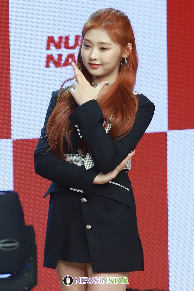4일 오후 서울시 강남구 청담동 일지아트홀에서 신예 걸그룹 시그니처(cignature) 채솔, 지원, 예아, 선, 셀린, 벨, 세미의 데뷔 리드 싱글 A ‘눈누 난나(Nun Nu Nan Na)’ 발매 기념 쇼케이스가 열려 멤버 벨이 포토타임에 포즈를 취하고 있다.