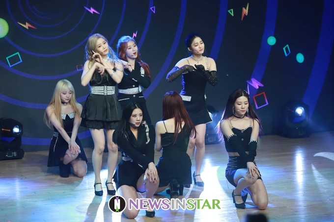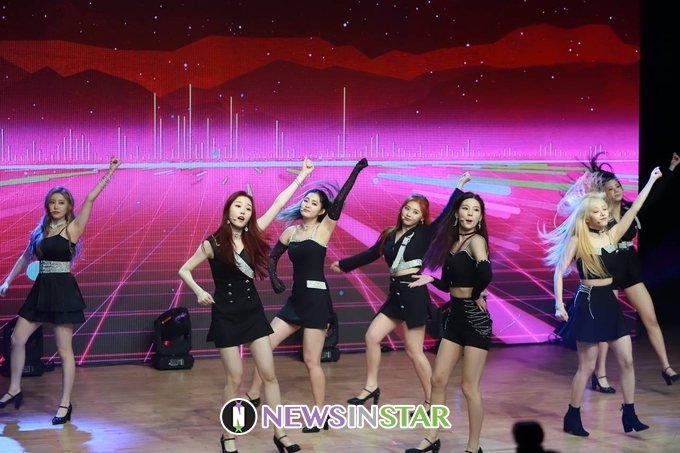 4일 오후 서울시 강남구 청담동 일지아트홀에서 신예 걸그룹 시그니처(cignature) 채솔, 지원, 예아, 선, 셀린, 벨, 세미의 데뷔 리드 싱글 A ‘눈누 난나(Nun Nu Nan Na)’ 발매 기념 쇼케이스가 열려 데뷔곡 '눈누난나' 무대를 선보이고 있다.