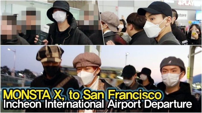 2월 10일 오후 인천시 중구 운서동 인천국제공항에서 그룹 몬스타엑스(MONSTA X) 셔누, 민혁, 기현, 형원, 아이엠이 해외 일정을 위해 미국 샌프란시스코로 출국하고 있다.