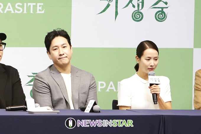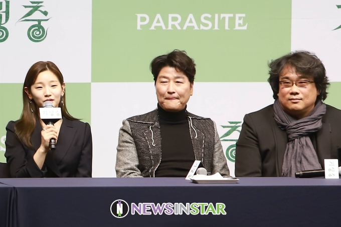 19일 오전 서울시 중구 소공동 웨스틴 조선 서울호텔에서 영화 '기생충' 기자회견이 열려 배우 박명훈, 장혜진, 이정은, 박소담, 송강호, 이선균, 조여정, 봉준호 감독, 곽신애 대표, 한진원 작가, 이하준 미술감독, 양진모 편집감독이 참석했다.
