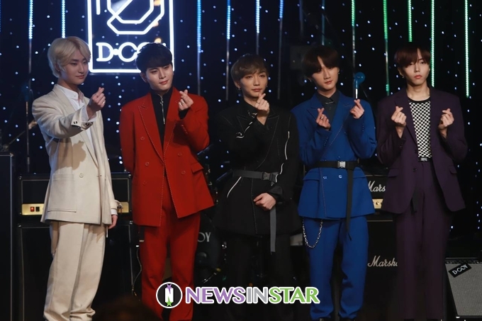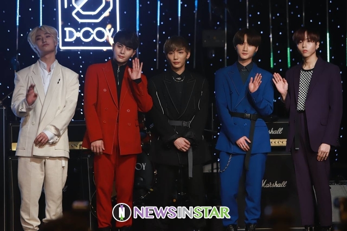 19일 오후 서울시 마포구 서교동 홍대 롤링홀에서 디코이(D.COY) 정민, 성우, 혁진, 원신, 도선의 데뷔싱글 '컬러 매직(Color Magic)' 쇼케이스가 열려 포토타임을 갖고 있다.