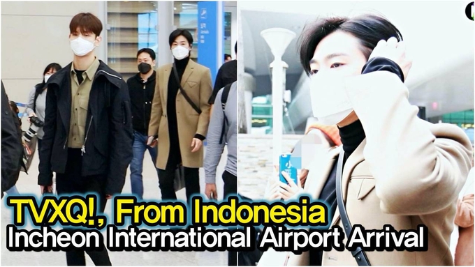 2월 22일 오전 인천시 중구 운서동 인천국제공항에서 그룹 동방신기(TVXQ!) 최강 창민, 유노 윤호가 해외일정을 마치고 인도네시아 자카르타에서 입국하고 있다.