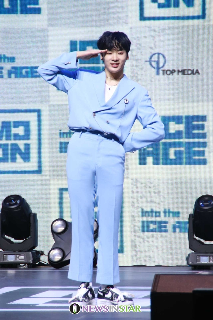 26일 오후 서울시 광장구 광장동 예스24 라이브홀에서 신인 5인조 보이 그룹 MCND 캐슬제이, 빅, 민재, 휘준, 윈의 데뷔 앨범 'into the ICE AGE' 쇼케이스가 열려 리더 캐슬제이가 포토타임을 갖고 있다.