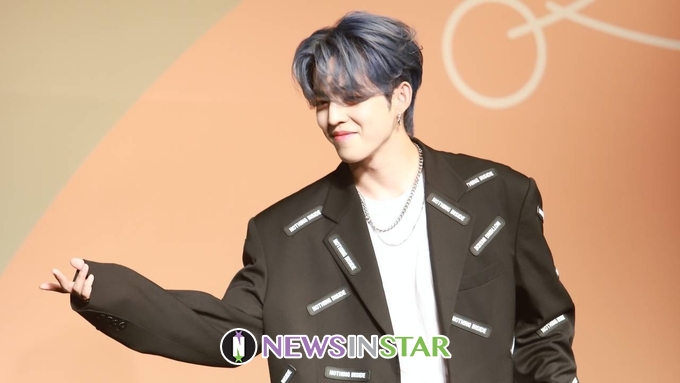 6월 22일(월) 오후 서울시 강남구 삼성동 인터콘티넨탈호텔 서울 코엑스에서 그룹 세븐틴(SEVENTEEN)의 미니 7집 '헹가래(HENGGARAE)'의 쇼케이스가 열려 에스쿱스가 포토타임을 갖고 있다.