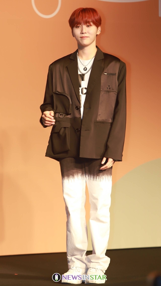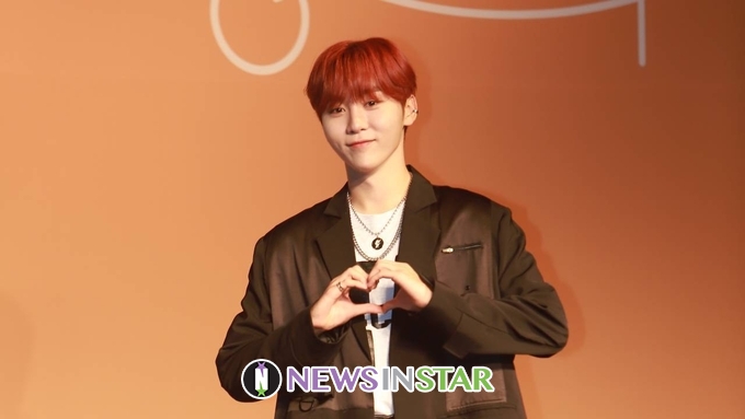 6월 22일(월) 오후 서울시 강남구 삼성동 인터콘티넨탈호텔 서울 코엑스에서 그룹 세븐틴(SEVENTEEN)의 미니 7집 '헹가래(HENGGARAE)'의 쇼케이스가 열려 승관이 포토타임을 갖고 있다.