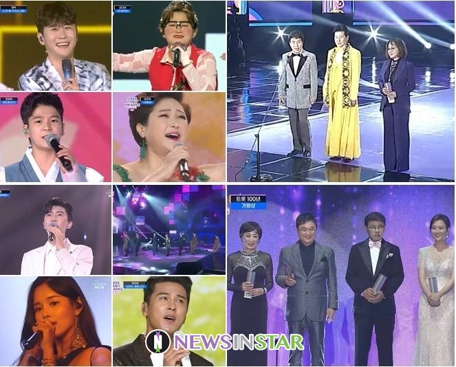 2000년대 트롯 명맥을 세운 장윤정이 ‘좋은 당신’, ‘트롯 가왕’ 남진이 ‘나야 나’, ‘트롯 여왕 빅3’ 주현미가 ‘짝사랑’, ‘추억으로 가는 당신’으로 트롯의 과거와 미래를 연결시켰다. 그리고 시상식 맨 처음 모습을 드러내며 품격을 높인 ‘국민 가수’ 이미자가 변함없는 옥구슬 보이스로 ‘동백아가씨’와 ‘내 삶의 이유 있음은’을 소화하며 축하쇼를 정점으로 이끌었다. ‘트롯 100년 심사위원 특별상’에는 ‘영화계 레전드’ 신영균 회장과 조보아가 시상에 나섰고, 장윤정이 트로피를 수상하게 됐다. 마지막으로 ‘트롯 100년 대상’은 61년 동안 오롯이 전통가요 외길을 걸어온 이미자가 수상의 영광을 안았다.