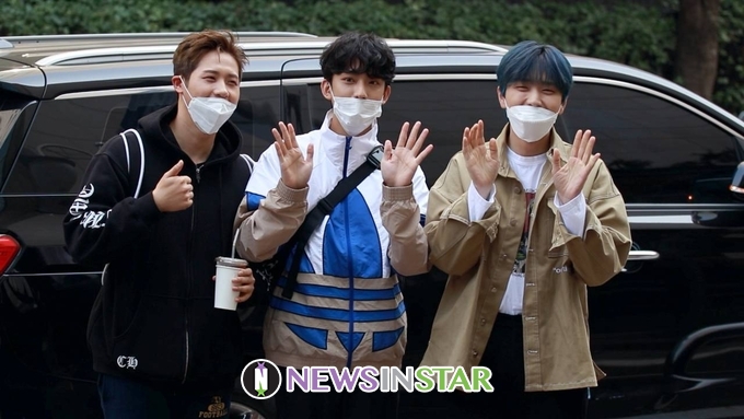 [뉴스인스타 양철수기자] 10월 27일(화) 오후 서울시 영등포구 여의도 KBS에서 진행된 KBS 2TV '유희열의 스케치북' 녹화를 위해 B1A4(비원에이포) 신우, 산들, 공찬이 방송국으로 들어서고 있다.