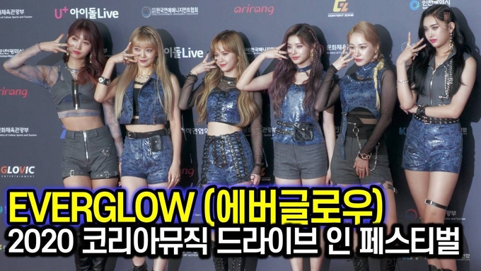 [뉴스인스타 양철수기자] 10월 31일(토) 오후 인천시 연수구 인천국제여객터미널에서 열린 ‘2020 코리아뮤직 드라이브 인 페스티벌(KMDF)’ 레드카펫 행사에 EVERGLOW (에버글로우) 이유, 시현, 미아, 온다, 아샤, 이런이 참석해 포즈를 취하고 있다