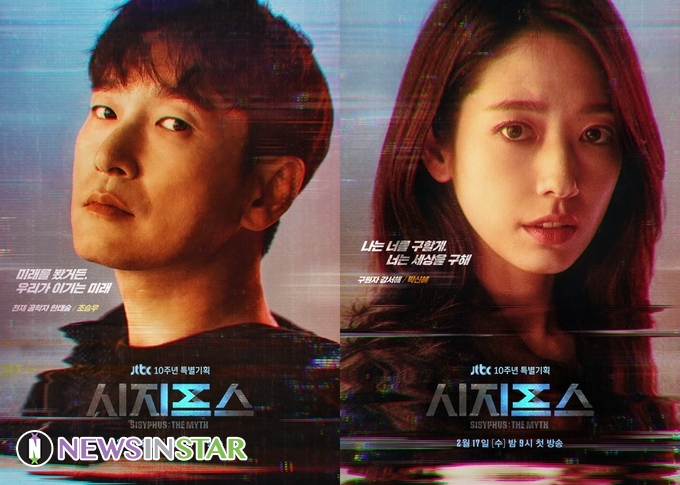 JTBC 10주년 특별드라마 ‘시지프스: the myth’(극본 이제인 전찬호, 연출 진혁, 제작 드라마하우스, JTBC스튜디오, 이하 ‘시지프스’)는 우리의 세상에 정체를 숨기고 살아가고 있는 존재를 밝혀내려는 천재공학자 한태술(조승우)과 그를 위해 멀고도 위험한 길을 거슬러 온 구원자 강서해(박신혜)의 여정을 그린 판타지 미스터리 드라마다. 오늘(28일) 공개된 캐릭터 포스터에는 한태술을 지켜 세상을 구해내고자 뭉친 두 사람의 강한 의지가 담겨 시선을 사로잡는다.