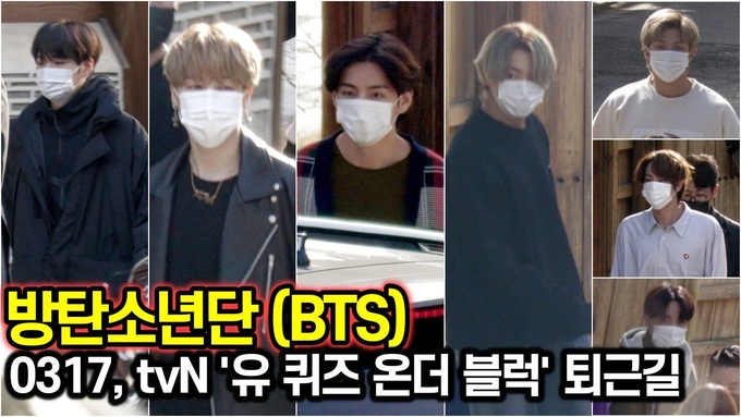 [뉴스인스타 양철수기자] 3월 17일(수) 오후, 서울시 성북구 성북동 한국가구박물관에서 진행된 tvN '유 퀴즈 온더 블럭' 녹화를 마치고 방탄소년단(BTS) RM, 진, 슈가, 제이홉, 지민, 뷔, 정국이 퇴근하고 있다.