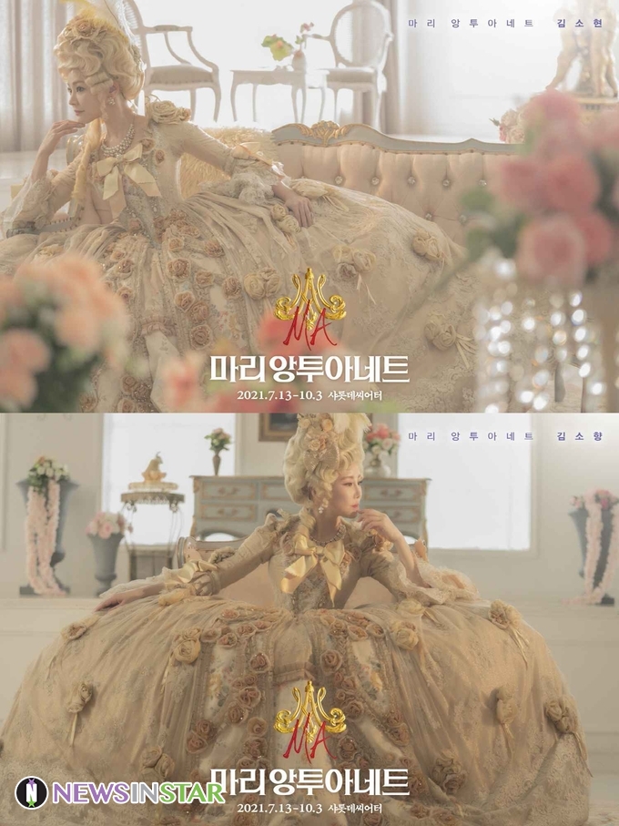 초연부터 재연, 이번 시즌까지 3번 연속 ‘마리 앙투아네트’로 무대에 서는 김소현은 금빛의 드레스를 착용하며 고혹적인 분위기를 자아내 18세기 가장 화려한 삶을 살았던 극 중 인물의 모습을 섬세하고 입체적으로 재현해 시선을 사로잡았다. 매 시즌 ‘마리 앙투아네트’의 비극적인 삶을 가슴 절절하게 소화해내며 ‘인생 캐릭터’를 탄생시켰다는 극찬을 받은 만큼 이번 공연에서도 관객들의 마음을 단번에 사로잡을 것으로 알려졌다.