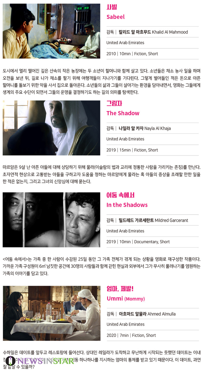 국내에서 쉽게 볼 수 없었던 아랍에미리트 영화 7편을 상영하는 ‘아랍에미리트 영화주간’이 오는 6월 18일(금)부터 24일(목)까지 7일간 온라인으로 개최된다.