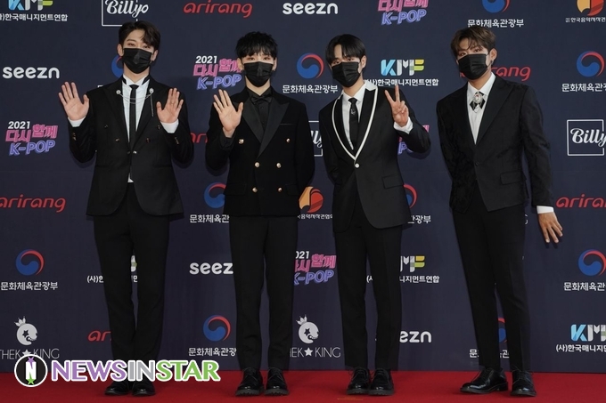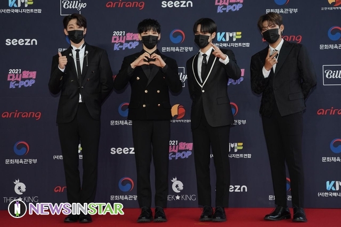 [뉴스인스타 양철수기자] 7월 17일(토) 오후 서울시 송파구 방이동 올림픽공원 SK올림픽 핸드볼경기자에서 진행되는 '2021 다시 함께 K-POP 콘서트'에 그룹 AB6IX가 참석해 포토타임을 갖고 있다.