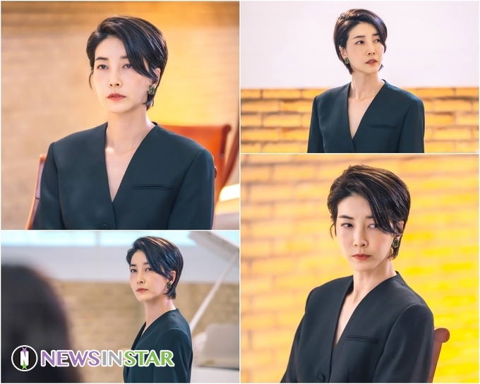 이와 관련 진서연이 범접할 수 없는 카리스마를 드리우고 있는 한성혜 역 포스가 첫 공개됐다. 짧은 헤어스타일과 어두운 의상으로 시크함을 자아내고 있는 한성혜는 이내 신경이 거슬리는 듯 날카로운 눈빛을 번뜩인다. 자리에서 일어나 누군가를 바라보는 모습에서조차 서늘한 기운이 감돌고, 찔러도 피 한 방울 나오지 않을 것 같은 냉혹함까지 내비친다.