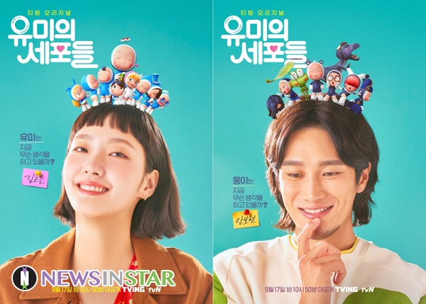 오는 9월 17일 티빙과 tvN에서 동시 공개되는 티빙 오리지널 ‘유미의 세포들’(연출 이상엽, 크리에이터 송재정, 극본 김윤주·김경란, 제공 티빙, 제작 스튜디오드래곤·메리카우·스튜디오N) 측은 31일, 유미(김고은 분)와 구웅(안보현 분)의 머릿속을 엿볼 수 있는 캐릭터 포스터를 공개해 흥미를 자극한다.