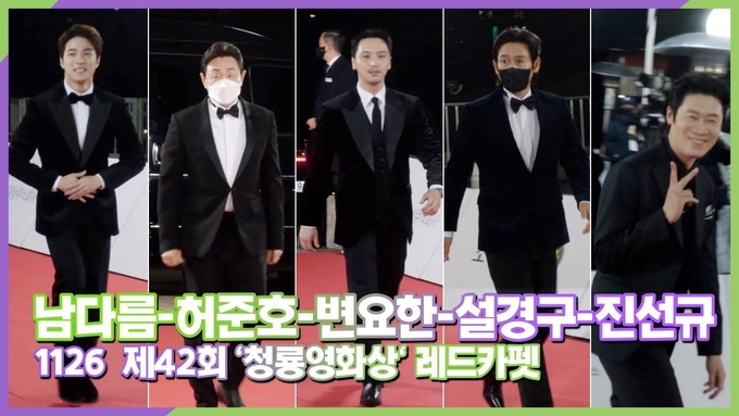 [뉴스인스타 양철수기자] 11월 26일(금) 오후, 서울시 영등포구 여의도 KBS홀에서 진행되는 제42회 청룡영화상 시상식 식전행사에 배우 남다름, 허준호, 변요한, 설경구, 진선규가 참석해 레드카펫에서 포즈를 취하고 있다.