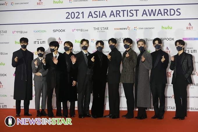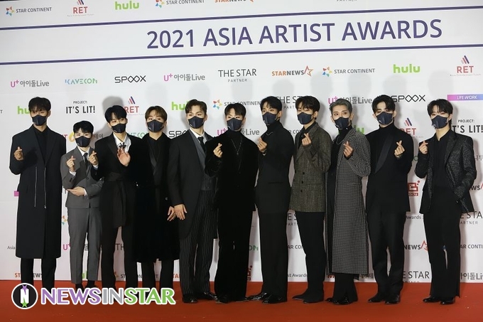 [뉴스인스타 양철수기자] 12월 2일(목) 오후, 서울시 강서구 화곡동 KBS아레나에서 열린 2021 아시아 아티스트 어워즈(2021 Asia Artist Awards) 시상식 레드카펫 행사에서 그룹 세븐틴이 참석해 포즈를 취하고 있다.