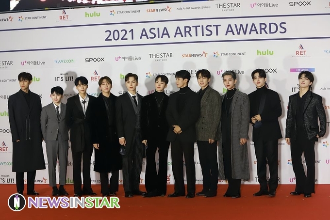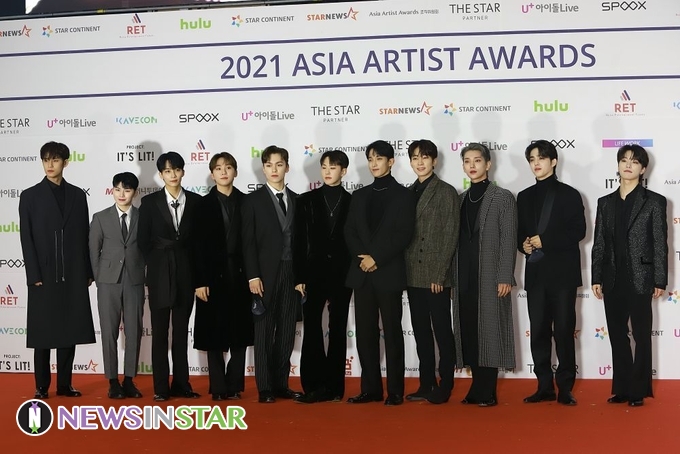 [뉴스인스타 양철수기자]  12월 2일(목) 오후, 서울시 강서구 화곡동 KBS아레나에서 열린 2021 아시아 아티스트 어워즈(2021 Asia Artist Awards) 시상식 레드카펫 행사에서 그룹 세븐틴이 참석해 포즈를 취하고 있다.
