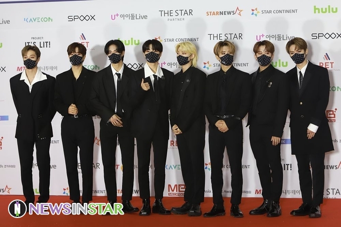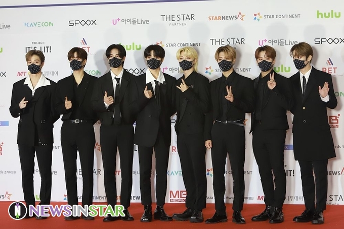 [뉴스인스타 양철수기자] 12월 2일(목) 오후, 서울시 강서구 화곡동 KBS아레나에서 열린 2021 아시아 아티스트 어워즈(2021 Asia Artist Awards) 시상식 레드카펫 행사에 그룹 스트레이키즈가 참석해 포즈를 취하고 있다.