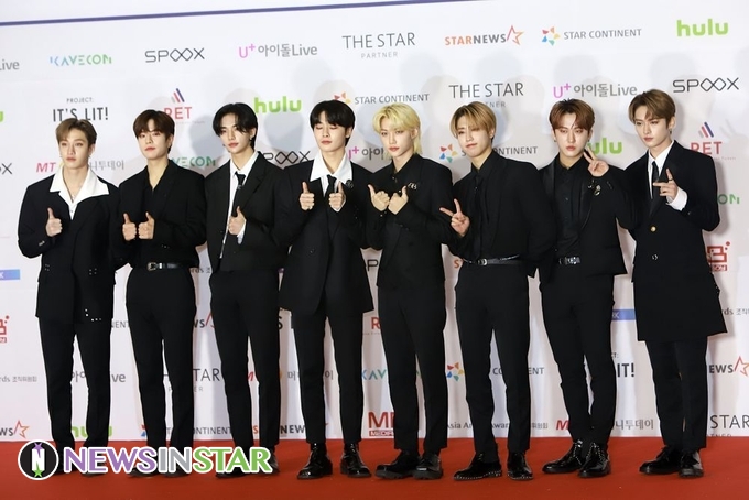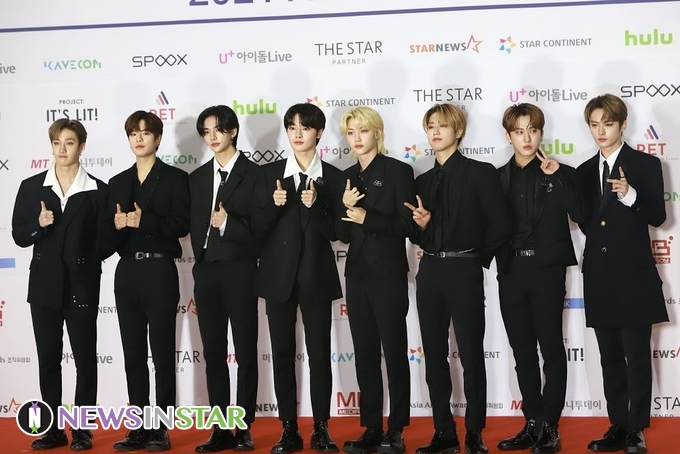 [뉴스인스타 양철수기자] 12월 2일(목) 오후, 서울시 강서구 화곡동 KBS아레나에서 열린 2021 아시아 아티스트 어워즈(2021 Asia Artist Awards) 시상식 레드카펫 행사에 그룹 스트레이키즈가 참석해 포즈를 취하고 있다.