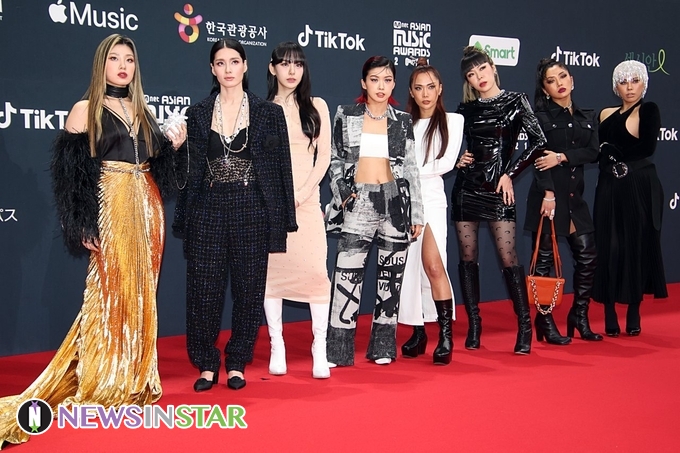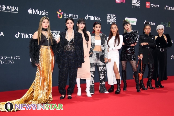 [뉴스인스타 양철수기자] 12월 11일(토) 오후, 경기도 파주시 CJ ENM 스튜디오센터에서 진행되는 ‘2021 Mnet ASIAN MUSIC AWARDS’ 레드카펫 행사가 열려 스트릿우먼파이터 리더 6인 허니제이, 아이키, 가비, 리헤이, 리정, 모니카, 효진초이, 노제가 포토타임을 갖고 있다.