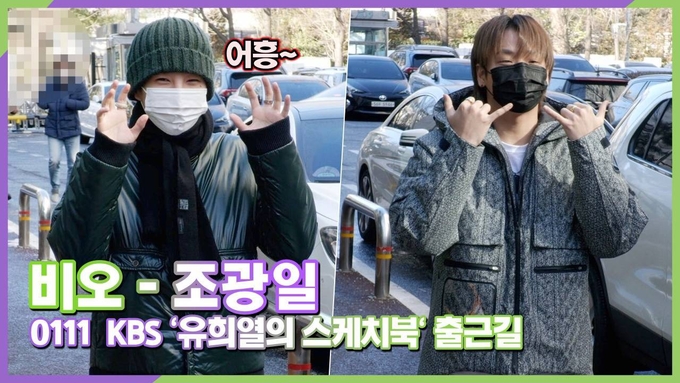 [뉴스인스타 양철수기자] 1월 11일(화) 오후, 서울시 영등포구 여의도 KBS 공개홀에서 진행되는 KBS '유희열의 스케치북' 녹화를 위해 쇼미더머니 래퍼 비오, 조광일이 방송국에 도착해 포즈를 취하고 있다.